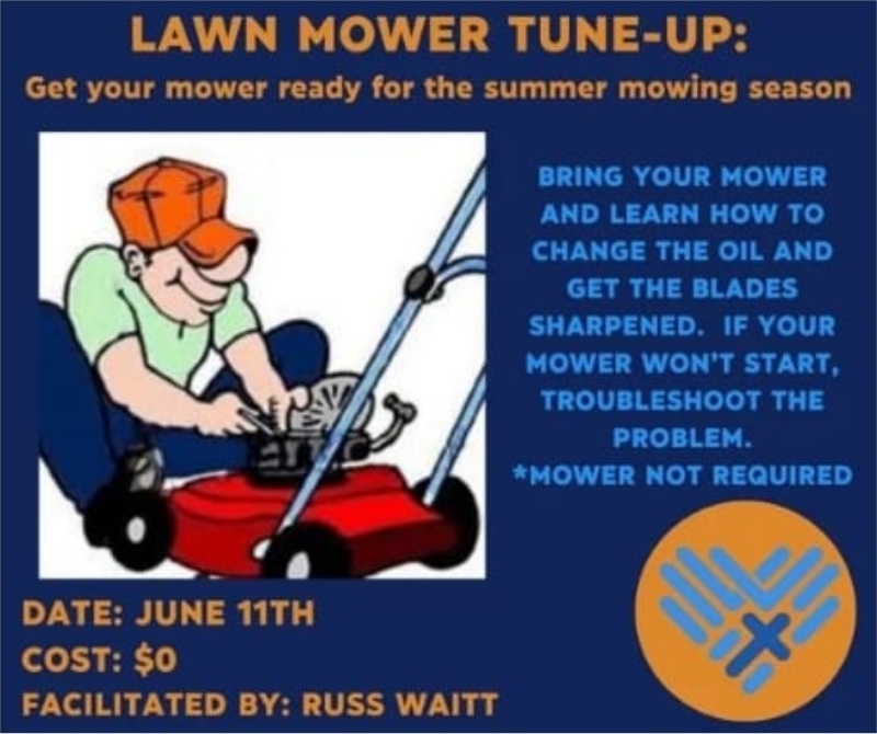 Get your mower ready for the summer mowing season. Bring your mower and learn how to change the oil and get the blades sharpened. If your mower won't start, troubleshoot the problem. *Mower not required COST: $0 AGES: High School and Up FACILITATED BY: Russ Waitt Sign Up