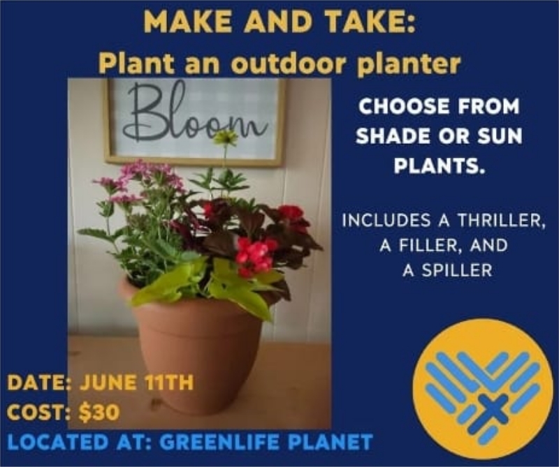 Choose from shade or sun plants. Includes a thriller, a filler and a spiller. AGES: High School and Up COST: $30 Sign Up